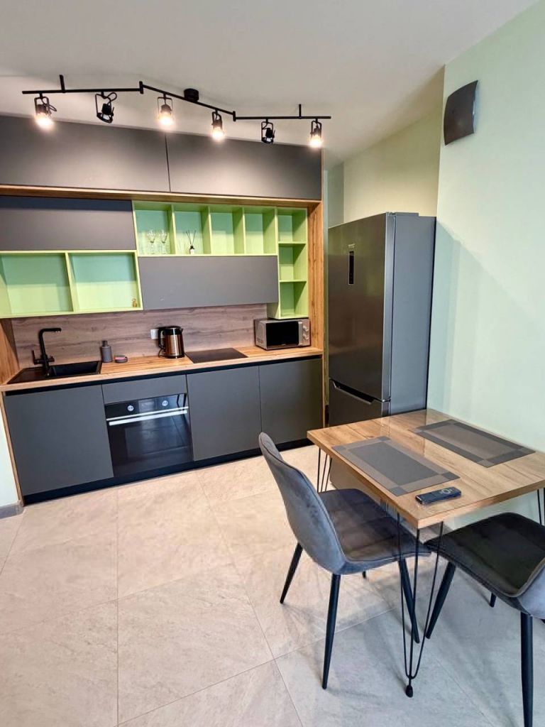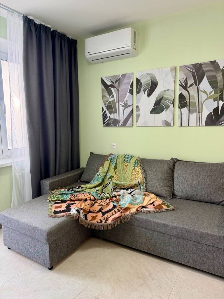3 спальных места (диван и двуспальная кровать), WiFi, телевизор (более 100 каналов), кондиционер, холодильник, микроволновая печь, стиральная машина, фен, утюг, вся необходимая посуда.